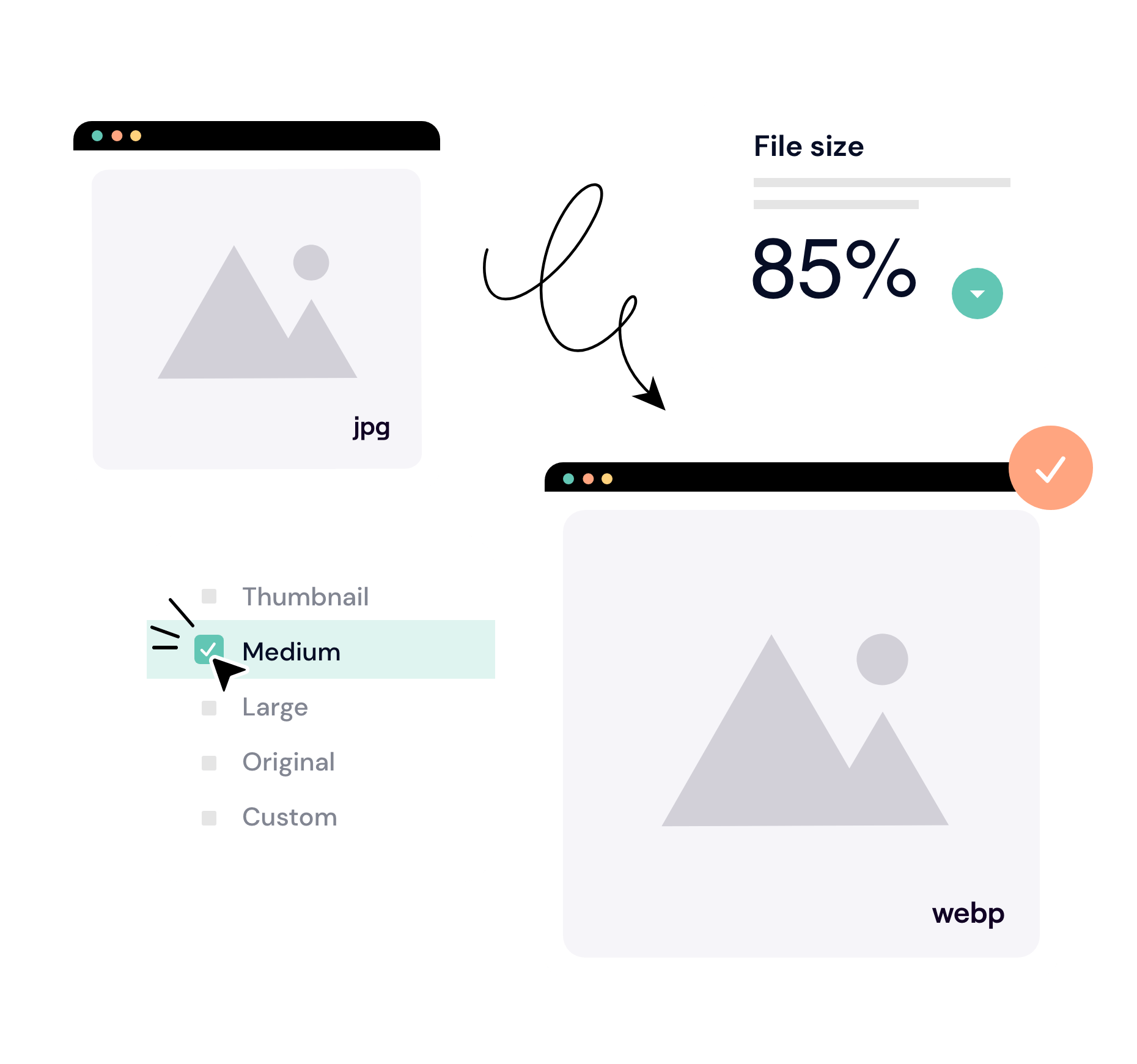 Automatically compress new uploads, save storage space with the best compression/quality ratios. Control which resizes to generate/optimize. 30 day backup of originals. Reduce server usage.